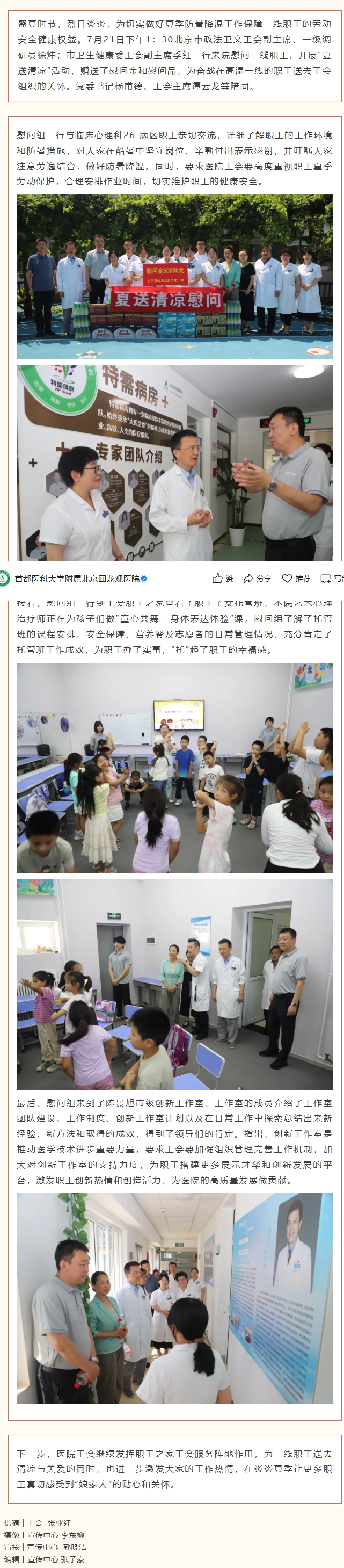 北京市政法卫文工会、市卫生健康委工会领导来院慰问一线医务人员
