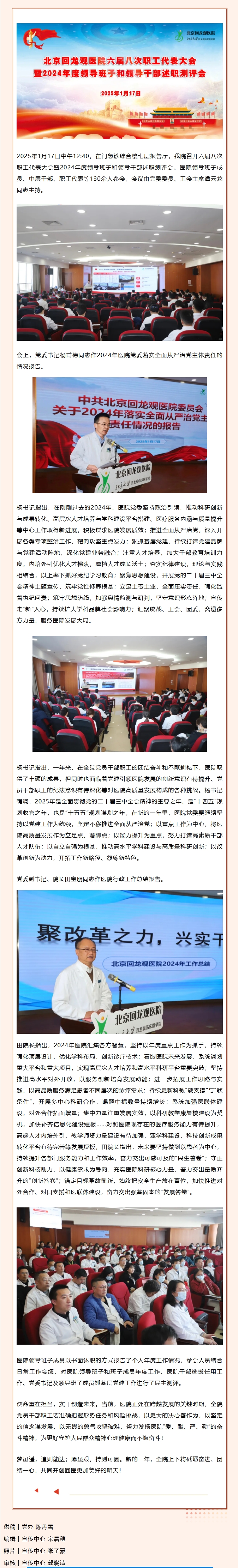 总结成绩 展望未来 | 北京回龙观医院召开六届八次职工代表大会暨2024年度领导班子和领导干部述职测评会