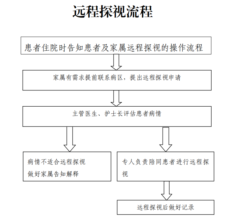 病房需安排专人负责远程探视工作,全程陪伴患者,解答家属问题,做好医患沟通;若探视过程中患者病情出现波动,需及时终止探视并做好解释。