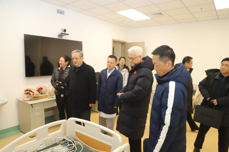 随后,国家卫健委科教司与北京市卫健委领导一行,实地考察了我院科教楼二层教学基地,详细了解了教室、多媒体设施及临床技能中心建设与运行情况,对我院的教学条件、设备设施、技能培训环境给予了高度评价。司领导在考察中特别指出,我院应进一步依托现有优势资源,加强教学能力建设,为医学人才培养提供更加坚实的支撑平台。