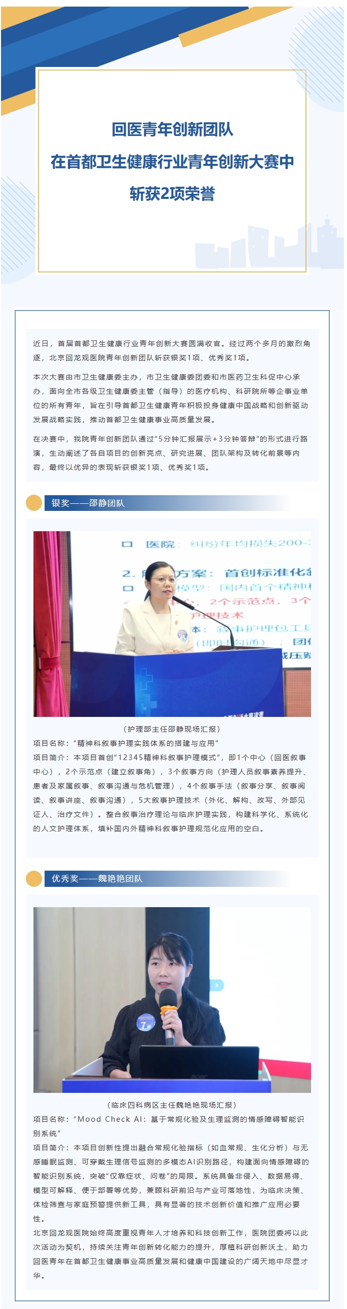 回医青年创新团队在首都卫生健康行业青年创新大赛中斩获2项荣誉
