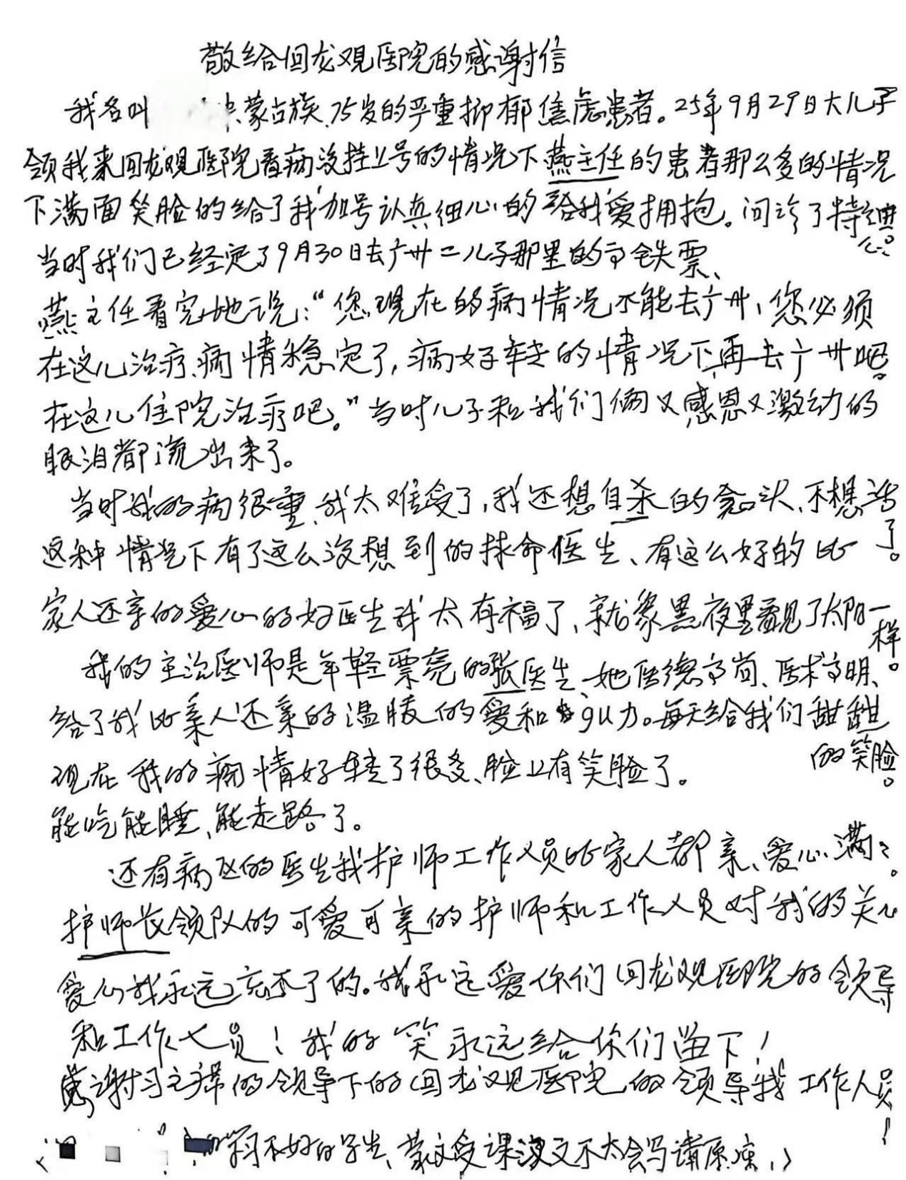 人文医学故事丨三日执笔,纸短情长75岁蒙古族老奶奶手写感谢信,一笔一画皆是暖心真情