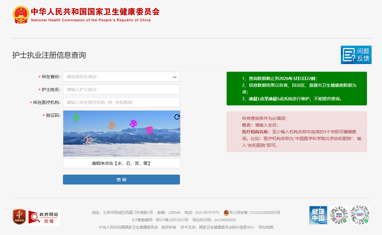 护士资质查询: https://zgcx.nhc.gov.cn/nurse